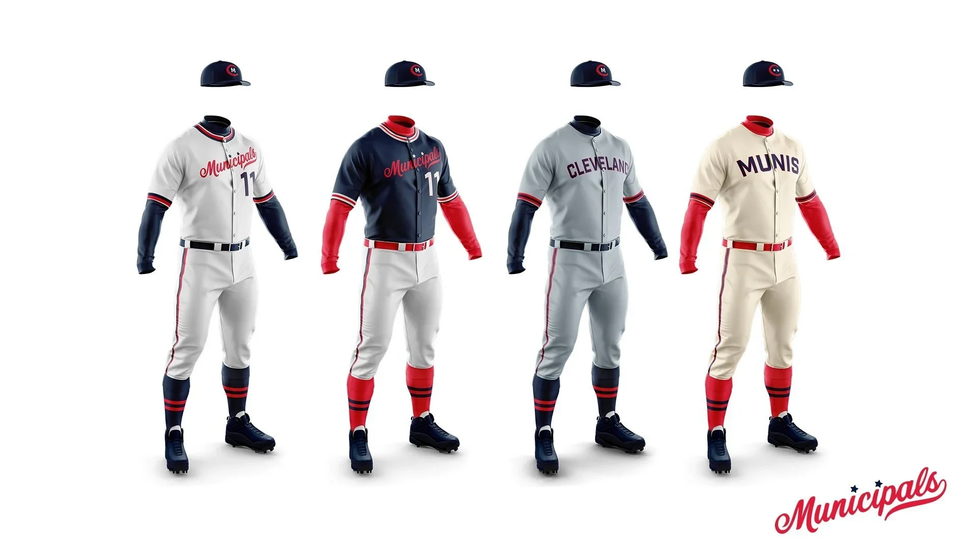 When it came to designing the Munis uniforms, we wanted it to be clear that although the name was changing this was not meant to be a new team, but rather a new era for a storied franchise. So we combed through Cleveland’s entire uniform history from 1901 to the present, picking out things we liked and things we thought most Cleveland fans would regard as canon. The idea was to not only have a timeless uniform lineup that looked professional, but also one that served as a summary of the franchise’s history in order to maintain a solid foundation as the name changes. The resulting look was a classic style appropriate for a team with Cleveland’s history and one that long-time fans would find familiar.